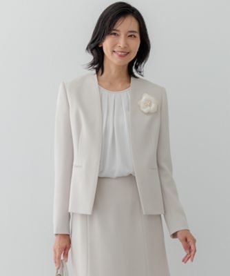 - レディース > スーツ・フォーマル・ドレス > 新品 23区 ノーカラージャケットスーツ セットアップ 40 ベージュ セットアップ対応/洗える】トリアセダブルジョーゼット ノーカラー