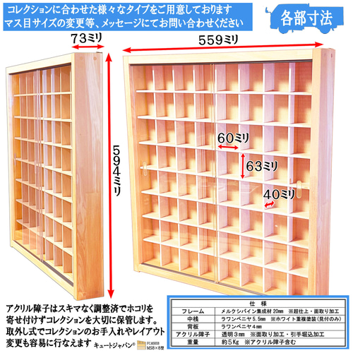- ケース・ボックス・コンテナ > 家具・インテリア > フィギュアショーケース 収納 コレクション 64マス アクリル障子付 日本製 フィギュア ガチャ 収納 コレクションケース 64マス アクリル障子付