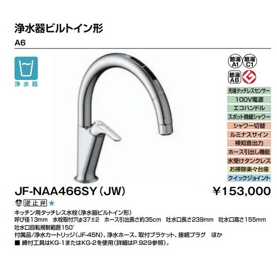 LIXIL浄水器ビルトイン型 タッチレス水栓 (H6)JFNAH462SYJG5 LIXIL(リクシル) 【JF-NAA466SY(JW)】LIXIL キッチン用 タッチレス水