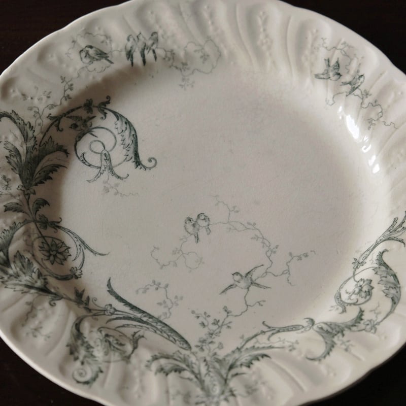 - キッチン・食器 > 食器 > GIEN RINCEAUX ジアン オーバル皿 ランソー フランスアンティーク Gien Rinceaux ジアン ランソー 平皿 ディナー φ23.8cm フランス アンテ