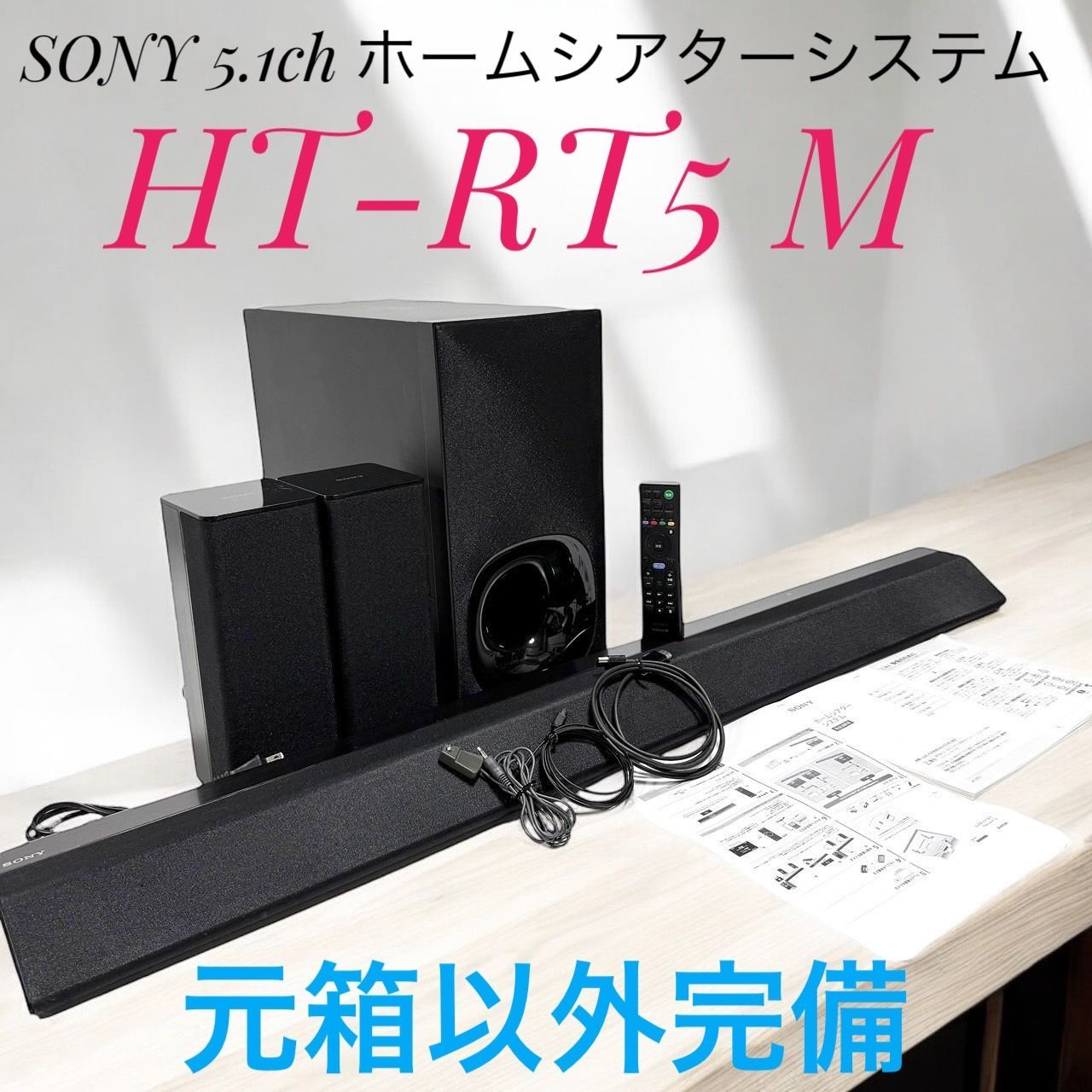 | 商品の特徴 | SONY 製ホームシアターシステムHT-RT5。SONY 製ホームシアターシステムHT-RT5。ぜ~んぶワイヤレス! ソニーからリアル5.1chホームシアター「HT-RT5。SONY HT-RT5 サウンドバー ホームシアターシステム2016年製新品を家電量販店にて購入し使用していました。(ただし現時点での確認状況であり、今後も保証するものではありません。◾️発送物バースピーカー×1、サブウーファー×1、リアスピーカー×2取扱説明書、リモコン、音場測定用マイク、HDMIケーブル※備品については写真に載せているものをお送りします。※使用や保管時にできた傷や汚れ等があると思いますので、掲載写真を確認していただき、ご納得いただいた上でご購入をお願いいたします。)※サイズの大きな製品のため、2つの段ボールを連結させ1つの箱として発送予定です。。SONY(ソニー) HT-RT5 ホームシアターシステム 5.1ch。動作、音出し確認済みです。【新品未開封】BOSE SOUNDLINK FLEX SE BLACKブラック。新品未使用 Sonos Move ブラック。)喫煙者、ペットはおりません。NEBULACapsulePocketProjector ポケットプロジェクター。【美品】DIATONE スピーカー DS-600Z ダイヤトーン。※中古品になりますので神経質な方はご遠慮くださいませ。ONKYO D-212EX ②。親*木様 Bose soundlink revolve + Bluetooth。(素人検品のため見落としがある可能性も含めたお値段ですので、何卒ご了承ください。Polk Audio ポークオーディオXT30 MXT30 センタースピーカー。スピーカー・ウーファー Edifier R1700BTs。そちらにご了承いただける方の購入をお願いいたします。【美品】Victor LS-500DⅡ スピーカースタンド ビクター | ||