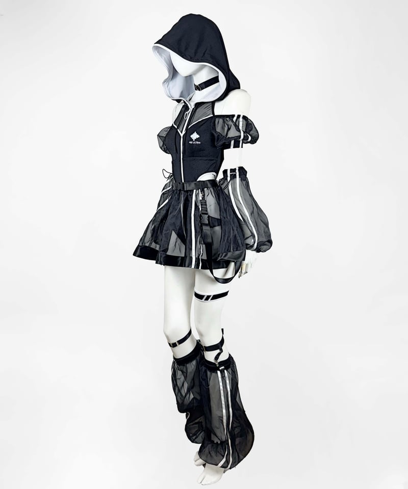 2着セット 新品 イドラタールテオドール サイバーパーカーワンピース水着 地雷系 サイバーパーカーワンピース水着》BLACK | HIDOLATRAL THEODOL