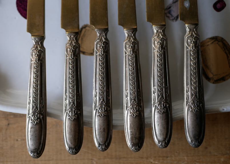 - キッチン・食器 > カトラリー(スプーン等) > 【フランス/アンリ・ラペール】純銀/デザートナイフ フルーツナイフ 2本 フランス/アンリ・ラペール】純銀/デザートナイフ フルーツナイフ 2