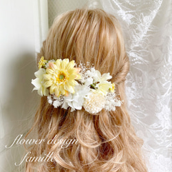 - プリザーブドフラワー > ブーケ・ブートニア > 【期間限定】花束 プリザーブドフラワー 髪飾り付き ブーケ 前撮り ヘアードレス クリーム イエロー ガーベラプリンセスの髪飾り ✧ ヘッドドレス