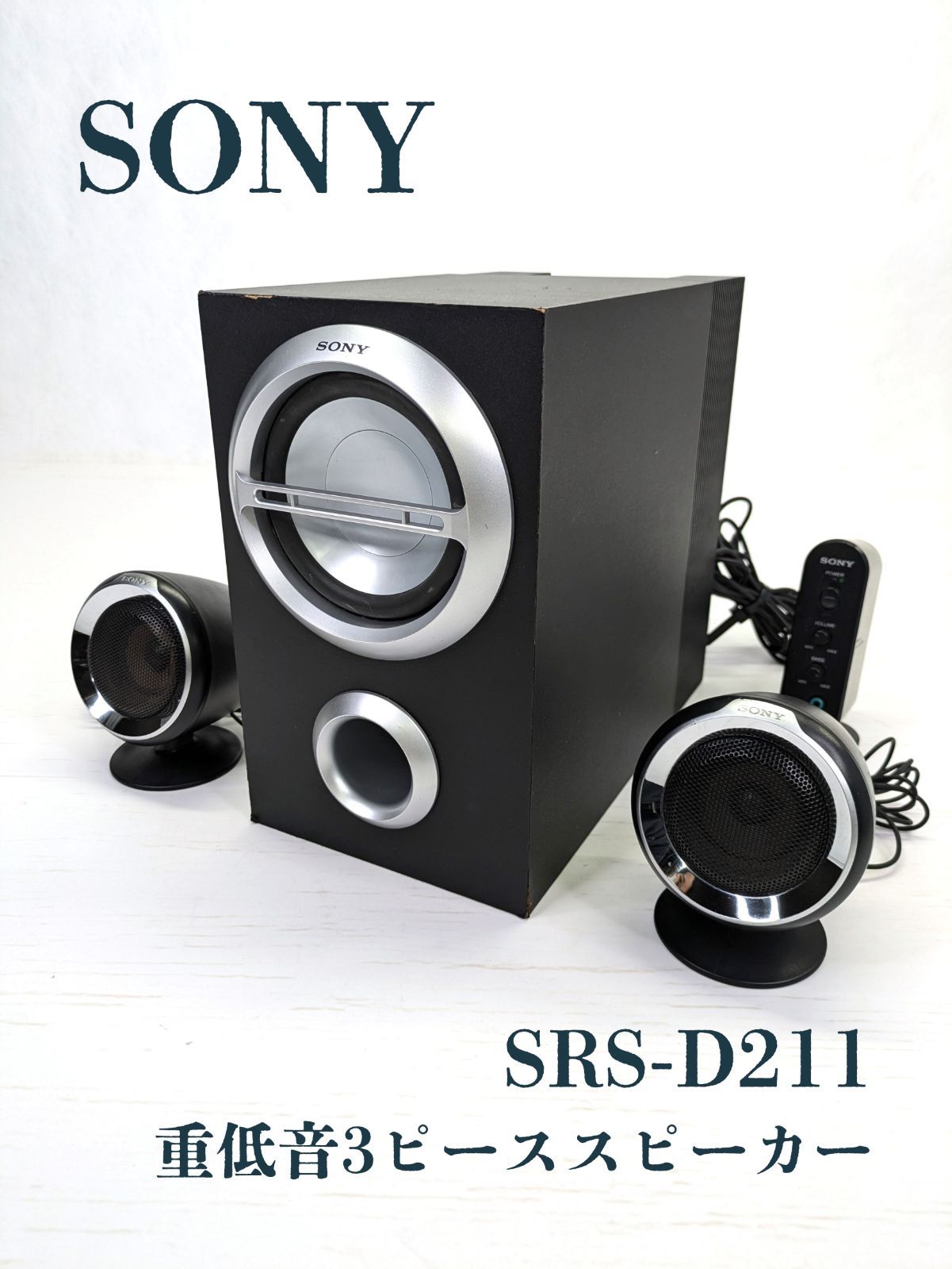 | 商品の特徴 | SONYアクティブスピーカーシステム【SRS-D211】 SONYアクティブ。sony srs-d211 active speaker system|Yahoo!フリマ(旧PayPayフリマ)。SRS-D211(ソニー)のレビュー。パソコンと接続し、動作確認済みです。未使用品ですが、自宅保管品となりますので、ご理解よろしくお願いします。※付属品は写真に写っている物のみになります。以下、参考に製品情報です。‥‥‥‥‥‥‥‥‥‥‥‥‥‥‥‥‥‥‥‥‥‥‥‥‥‥‥‥☆パソコンで楽しむ映画・ゲームなどを大迫力サウンドで再生。使い勝手、デザインを磨いた、重低音3ピーススピーカー☆総合出力35W、口径120mmのスピーカーユニット搭載のサブウーファーが、パワフルで大迫力の重低音を実現☆サテライトスピーカーは上/下2通りのアングル調整ができ、壁掛け設置も可能☆1系統アナログ2入力端子装備。パソコンとポータブルオーディオを同時接続可能☆すべての操作が手元でできる独立型ワイヤードコントローラー☆デスクトップでパソコンとマッチする、スタイリッシュなデザイン☆防磁設計◇仕様出力(JEITA)35W電源本体直付け電源コード(AC100V 50/60Hz)入力プラグ/端子 ステレオミニプラグ×1 ステレオミニジャック×1接続コード長 サテライトスピーカー:約2m コントローラー-サブウーファー:約2m電源コード:約2m大きさ(幅×高さ×奥行) コントローラー部:約50×140×99mm サテライトスピーカー部:約98×124×84mm サブウーファー部:約163×267×301mm質量 コントローラー部:約134g サテライトスピーカー部:約294g サブウーファー部:約4,200g。SONY アクティブスピーカー SRS-D211 黒の談笑:SRS-D211。【国内正規品】harman/kardon AURA。カロッツェリア TS-CH700A センタースピーカー 5.1ch 美品。MIRAI スピーカー 。Marshall Emberton II スマートスピーカー。SHARP AQUOS 型名 4T-C55DQ1 テレビ台座 | ||